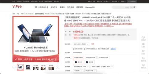 而另一款产品华为MateBook E 2022款二合一笔记本,本体采用了一块12.6英寸的OLED原色显示屏,屏占比高达90%,拥有最高600nit的亮度,搭配华为智能磁吸键盘和第二代华为M-Pencil可以在平板和笔记本模式之间自由切换非常方便,整机709克的重量和7.99mm的机身厚度使得它在日常生活中可以以非常便携的姿态帮助我们处理工作,配置方面,HUAWEI MateBook E 2022款采用了11代酷睿i7处理器,目前同样已经上架了华为商城,售价5999元起。