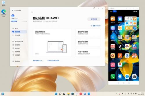 将华为MateBook X Pro 2022 12代酷睿版与华为手机连接后,我们便可在电脑屏幕上看到额外的手机屏幕,这不仅仅能帮助我们直接通过大屏操作手机,还能将手机作为“无线U盘”,手机中的图片可以直接“拖拽”到电脑上,电脑中的文件也能直接“拖拽”到手机中,提升办公效率。