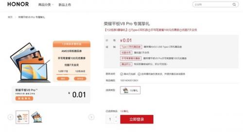 12月17日,荣耀平板V8 Pro在荣耀商城开启预约,预约界面显示,12月26日将举办新品发布会,相信届时会有多款新品亮相。荣耀也为荣耀V8 Pro准备了专属的预约活动,1分钱享3重挚礼,限量赠价值99元荣耀Type-C耳机,赠价值100元荣耀平板V8 Pro手写笔套餐优惠券,赠优酷7天VIP会员,准备入手的新平板的小伙伴别错过。