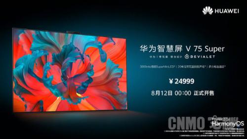 华为智慧屏V 75 Super是华为推出的旗舰新品,由华为与帝瓦雷联合设计,配备了3000nits鸿鹄SuperMiniLED屏幕,拥有20单元帝瓦雷影院声场,支持多方畅连通话,已于8月12日0点正式开售,售价24999元;