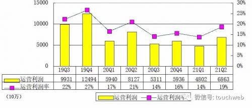 挚文集团2021年第二季度运营利润为6.863亿元(约1.063亿美元),运营利润率为19%。