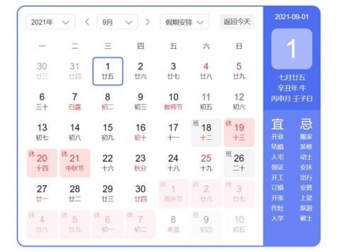 今天是九月第一天,2021年还有4个月时间,同时今年还有10天假期,包括中秋节和国庆假期,其中中秋放假3天,国庆放假7天。