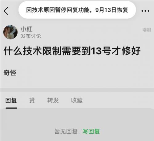今日,多位网友发现豆瓣“回复”功能无法使用,系统显示“因技术原因暂停回复功能,9月13日恢复”。