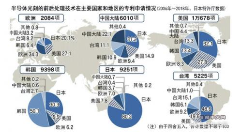 半导体光刻的前后处理技术在主要国家和地区的专利申请情况