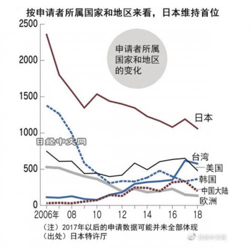 各个技术领域的申请数量(图源日经中文网全文同)