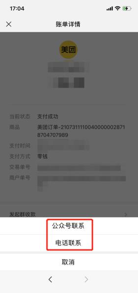 第三步:选择联系商户,这里一般会提供公众号或者电话联系方式,方便找到商家。