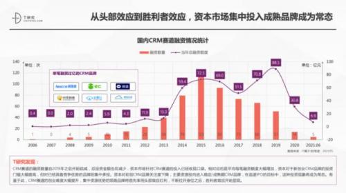 - CRM市场的竞争进入头部效应期,资本、市场资源聚焦于成熟期品牌,产品/服务雪球效应加剧。