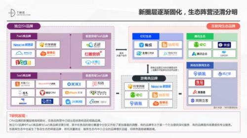 - CRM品牌商阵营区隔愈发明显,独立品牌商与互联网生态下的品牌商都获得快速成长的空间,并在各自领域涌现一批领先品牌;