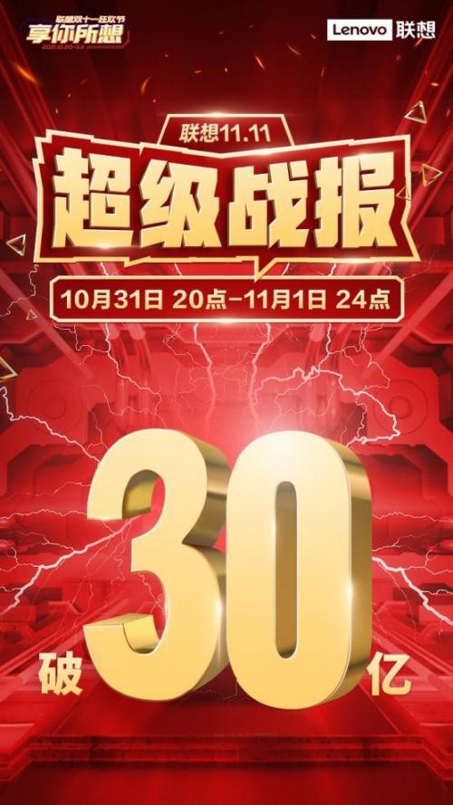 截止11月2日0点,联想双十一28小时超级战报正式出炉。联想首战告捷,全网销售额高达30亿,在京东、天猫、苏宁等多个电商榜一骑绝尘拿下16冠,迎来首日开门红!