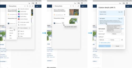 而Edge浏览器的引文功能便为使用者提供了一种更为便捷的文献管理和引文生成方式:当用户在“集锦”功能中添加文献后,Edge浏览器会自动识别,并生成对应的引文格式供用户取用。