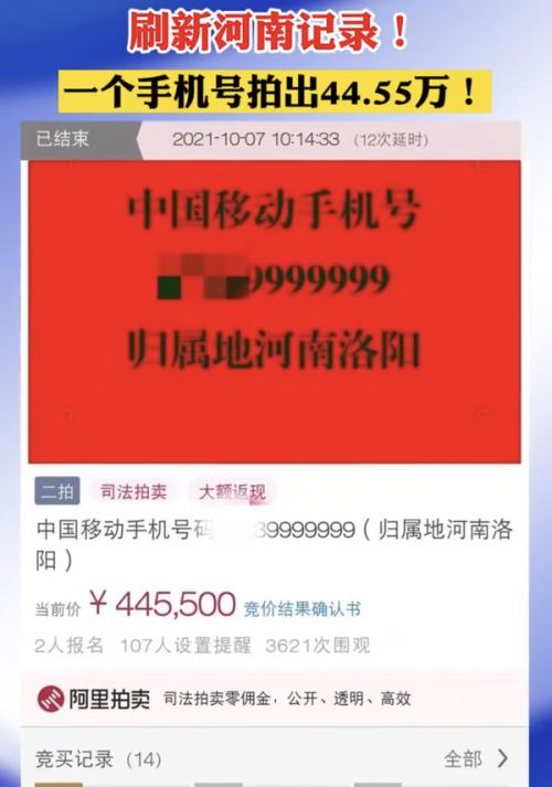 一个手机号以44.55万拍卖成功