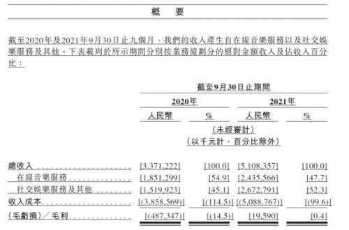 网易云音乐净亏损持续显著收窄,前三季度毛利率大幅提升并转正为0.4%。今年上半年,网易云音乐调整后净亏损从去年同期的8亿元收窄为5亿元。