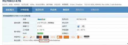 而显示器超频亦是如此,飞利浦275M1RZ这款电竞显示器,所使用的面板型号为M270KCJ-K7B。这是一块来自群创光电的27英寸、2K分辨率Nnao IPS面板,面板的原生刷新率为165Hz,具有非常不错的色彩表现和动态画面效果。