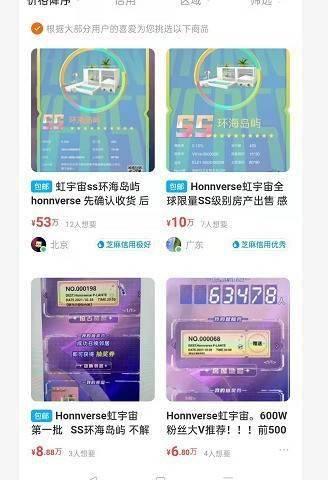 在Honnverse收获火爆预约和热烈讨论的同时,某二手交易平台上也出现了前500号及“幸运号码”的交易与流通。譬如有网友出售地契编号前5的虹宇宙SS环海岛屿,和编号20的地契,已经叫价50万。