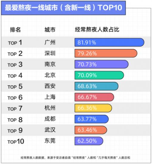 最爱熬夜一线城市(含新一线)TOP10