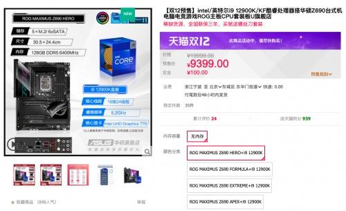 且天猫商城还有ROG MAXIMUS Z690 HERO主板搭i9-12900K处理器套包,双12预售价仅9399元,还可享3期免息福利,入手良机不容错过!购买链接:https://detail.tmall.com/item.htm?id=656926579728&skuId=4733060004437
