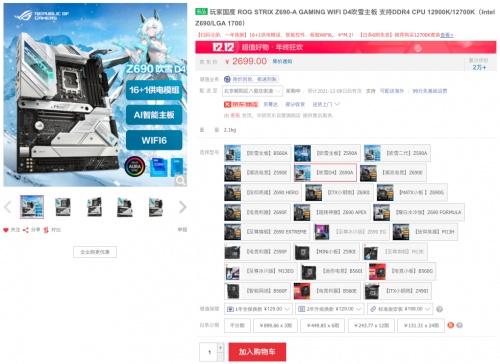 且天猫商城还有华硕Z690吹雪D4主板搭i7-12700K处理器套包,天猫双12火爆促销价5899元,可享满2000元减200元优惠券及24期免息福利。购买链接:https://detail.tmall.com/item.htm?id=656153165517&skuId=4912548910783