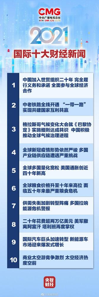 除了以上两条,“中国加入世贸组织二十年”“中老铁路全线开通”等新闻也入选了2021年国际十大财经新闻,具体可以参考上图,CNMO就不再赘述了。