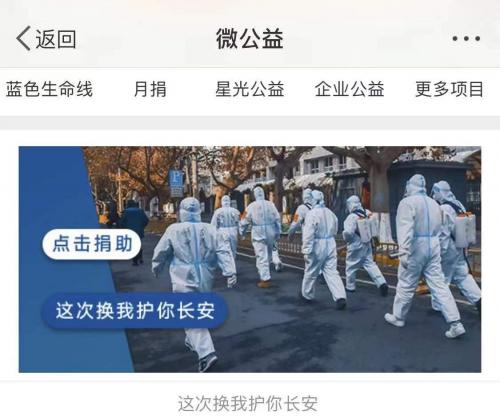 12月25日, @微公益联合@微博政务@微博音乐@微博明星发起#这次换我护你长安#活动,推动多家公益机构行动起来,为防控疫情切实地出一份力,为抗疫一线人员提供防疫、保暖物资及生活必需品;同时,联动各省政务官微、18位公益领域博主、45位明星,共同发声,为西安人民加油!