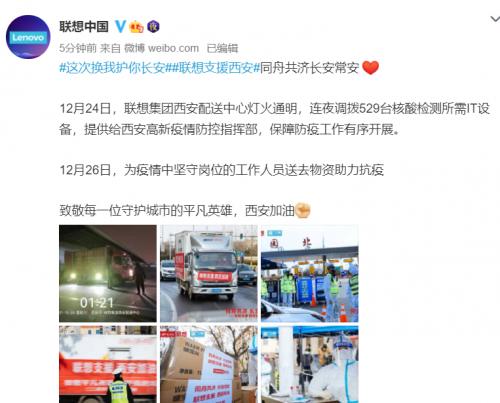 复星、联想等多个企业也在第一时间驰援助力,向西安人民伸出援手。