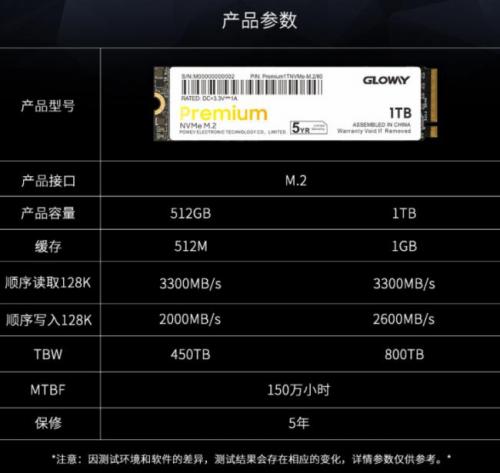 光威Premium系列固态硬盘的持续读写最高分别可以达到3.3GB/s、2.6GB/s,平均故障间隔时间长达150万小时。