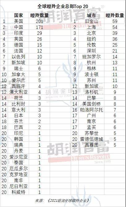 1月25日,胡润首次发布了《胡润全球瞪羚企业》榜单,列出了成立于2000年以后、三年内最有可能达到独角兽级十亿美金估值的高成长性企业。
