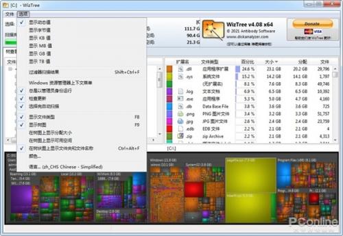 WizTree还有其他非常实用的功能。例如,它能够选择KB、MB、GB等不同单位来显示文件体积,方便调节视图尺度;