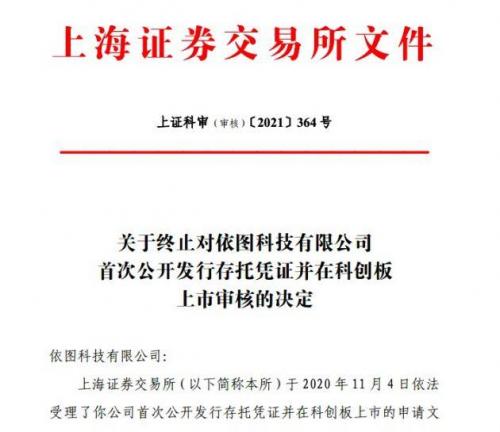 【TechWeb】7月2日消息,上交所消息,决定终止对依图科技首次公开发行存托凭证并在科创板上市的审核,该公司拟融资金额75.05亿元。