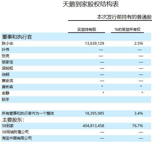 58到家IPO前拥有404,813,458股普通股,占比76.7%。IPO后拥有404,813,458股普通股。