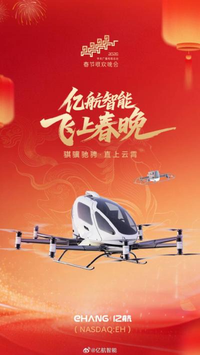 在2026年春晚合肥分会场,亿航智能携16架EH216-S无人驾驶载人航空器与22,580架GHOSTDRONE 4.0无人机编队上演灯光秀空中造景。后者以“单台电脑控制最多无人机同时升空”,打破编队飞行架次纪录,获吉尼斯世界纪录认证。