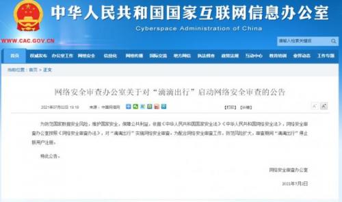 网信办对“滴滴出行”启动网络安全审查