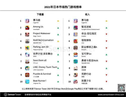 3月24日,Sensor Tower商店最新的情报数据显示,2021年日本移动游戏市场收入再创新高,达到184.5亿美元。2021年日本移动游戏市场收入较2020年提高6.5%,达到184.5亿美元,其中App Store与Google Play收入占比分别为57.9%与42.1%。日本仍然是海外手游收入第二大市场,仅次于美国。