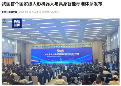据央视新闻报道,人形机器人与具身智能标准化(HEIS)年会在北京召开,会上正式发布《人形机器人与具身智能标准体系(2026版)》。这是我国首个覆盖人形机器人全产业链、全生命周期的标准顶层设计,标志着相关产业进入规范化发展新阶段。体系涵盖基础共性、类脑与智算、肢体与部组件、整机与系统、应用、安全伦理6个部分,为技术演进、模块化发展、软硬件集成与融合及安全合规等提供规范指导。