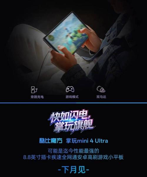 酷比魔方官方微信公众号昨日发文,8.8英寸插卡疾速全网通高刷游戏小平板“掌玩mini 4 Ultra”将于下月亮相。针对网友关于是否用上Flyme系统的提问,官方回复“在谈适配”。