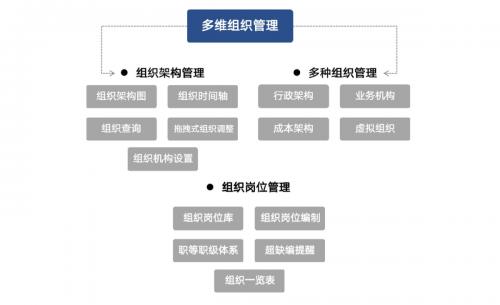 •配合精细化组织岗位权限控制体系,灵活配置管理权利和多级部门,满足多类型、多层级的多维组织管理
