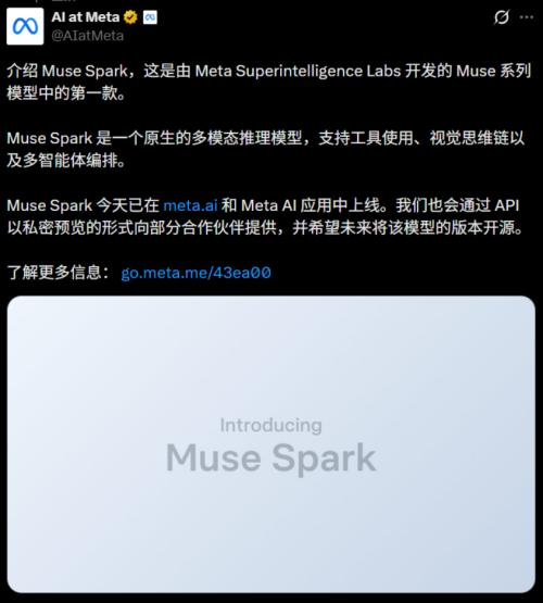 Meta表示,Muse Spark采用高效架构,计算成本较传统方案大幅降低,性能可对标上一代中型模型,同时保持轻量化运行。未来仍会继续推出开源模型,但Muse Spark将以私有API形式对外提供服务,目前仅向特定合作伙伴开放预览版,计划后续面向更广范围开发者提供付费API访问,探索商业化变现路径。