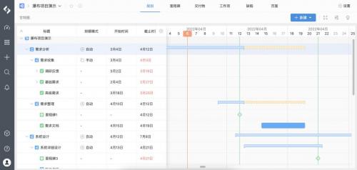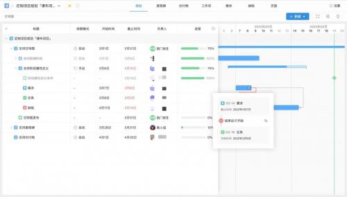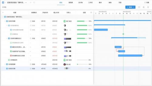 甘特图:借助甘特图,可视化项目计划,呈现和管理项目进度、关键里程碑、资源、依赖阻塞点;