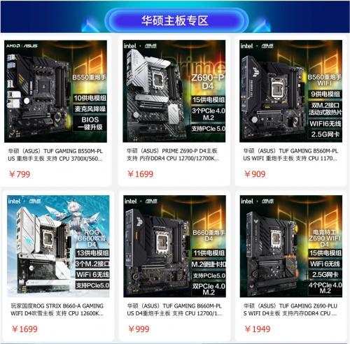 不仅如此,本次踏春好物季还为广大玩家准备了更多爆款单品。AMD平台有华硕B550重炮手主板,到手价799元(购买链接:https://item.jd.com/100007523983.html)。Intel平台有华硕B560重炮手WIFI主板,到手价909元(购买链接:https://item.jd.com/100010397513.html);华硕B660重炮手D4主板秒杀价999元(购买链接:https://item.jd.com/100031223666.html);华硕B660吹雪D4主板到手价1699元(购买链接:https://item.jd.com/100017386939.html);华硕PRIME Z690-P D4主板到手价1699元(购买链接:https://item.jd.com/100015146075.html);华硕TUF GAMING Z690-PLUS WIFI D4主板秒杀价1949元(购买链接:https://item.jd.com/100027860548.html)。