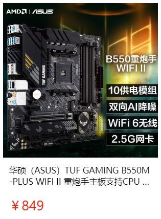 若你更青睐于AMD平台,则可以选择B550新晋板皇,华硕B550重炮手WIFI二代主板(TUF GAMING B550M-PLUS WIFI II)。其外观上继承了TUF GAMING电竞特工系列的美学设计,兰博基尼黄配色加上军事迷彩元素,尽显疾速、稳定,引领锐龙主机平台新风向!现该主板京东售价849元,可享6期免息福利,购买链接:https://item.jd.com/100016125117.html
