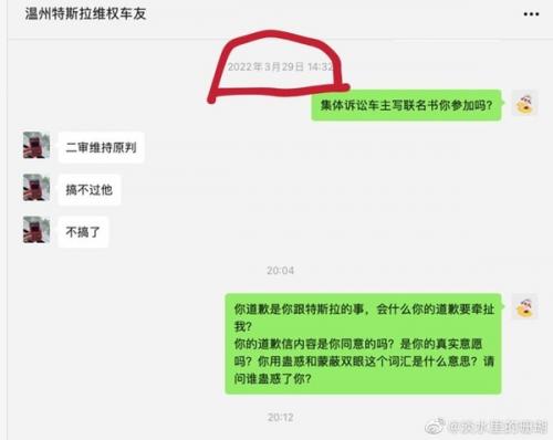 此外,根据张女士的说法,陈俊意在联系她时,已经开始自主维权,还去了杭州315现场。张女士还曾嘱咐他:尽量客观,就事论事。合法合理,理性维权。针对道歉信中所说的“蛊惑”一词,张女士称那只是在集体诉讼车主联名时询问其是否参加,维权车主之间讨论合法维权,一句善意的询问就被描述成了“蛊惑”。