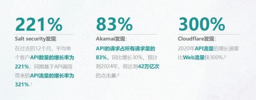 API自身的无状态性、对请求中资源的可识别性、删除/修改服务端资源的可操作性、以及服务端返回的足够详细的信息所带来的资源暴露面的扩大等,这些脆弱性成为API被攻击的天然漏洞,都促使API的攻击数量呈指数级增长。
