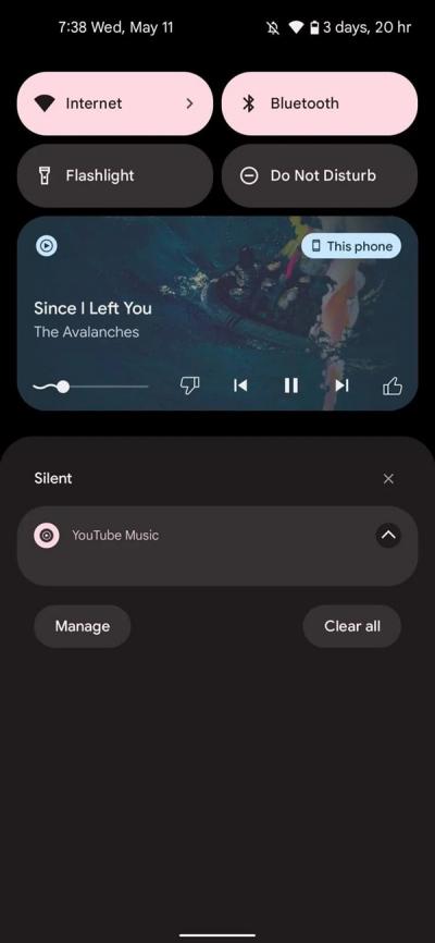 Android 13 Beta 2中对状态栏媒体控件做了波浪线进度条等新设计。