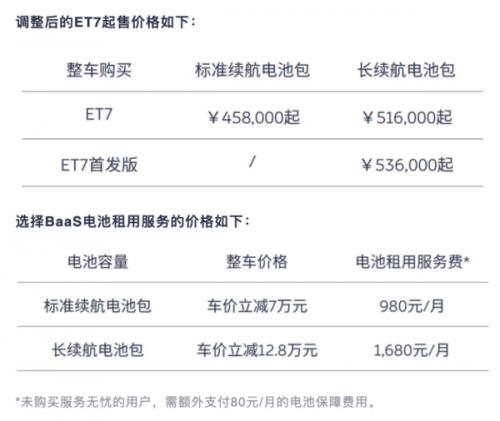 5月13日,蔚来官方App宣布,受近期全球原材料价格持续上涨影响,2022年5月23日起,蔚来将对ET7价格进行调整:ET7全系车型起售价格上调10000元。2022年5月22日(含)前支付ET7定金且在2022年内提车的用户,仍可按照本次调整前价格购买。