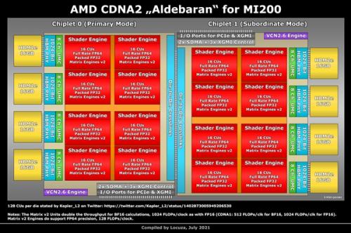MI-Next这里指的自然就是多次曝光的Instinct MI200,代号Aldebaran,CDNA2架构,MCM双芯封装,预计128个计算单元。