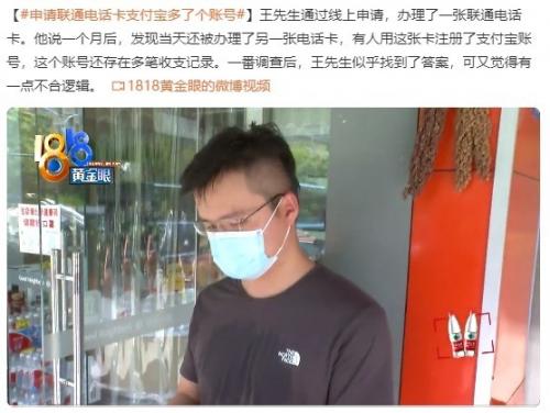 于是,王先生便使用国务院小程序查询名下电话卡,通过工信部反诈中心回复短信来看,王先生名下多了一张中国联通的电话卡。对此,联通公司反馈,是上门的办理人员为了多拿提成,私自给王先生多开了一张卡,开完卡后就丢了。王先生表示,这是不符合逻辑的,注册支付宝账号不仅需要电话卡,还需要个人姓名和身份证账号的。事发后,办理人员张某某给王先生发了多条短信表示,卡是自己开的,当时因为考核压力大所以犯了错误,但是支付宝账号的事自己确实不知道,后续有什么问题他来承担。