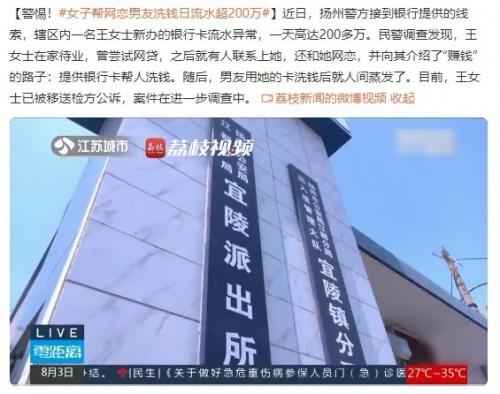 据了解,近日,扬州警方接到银行提供的线索,辖区内一名王女士新办的银行卡流水异常,一天高达200多万。警方表示,银行卡在当日流入大量资金,比较异常,涉嫌电信网络诈骗。民警核实发现,王女士在家待业,没有经济来源。那银行卡的资金从何而来呢?经过民警深入调查,王女士曾尝试网贷,之后就有人联系上她,还和她网恋,并向其介绍了赚钱的路子:只需要提供银行卡,到时候会在她银行卡上留1万多。