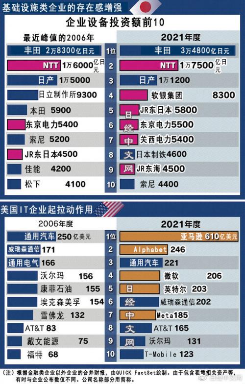 据另一家相关机构统计,2021年度进行设备投资的企业NTT和日产等的设备投资额几乎与2006年的数据一样。