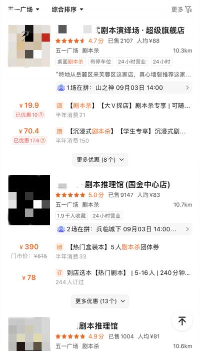 长沙市中心附近部分剧本杀店铺