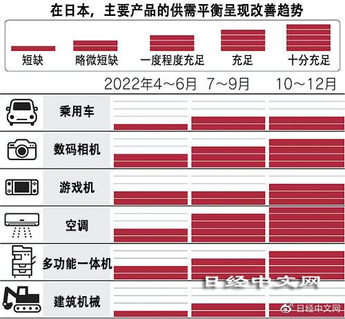 10月11日,根据日本经济新闻社的最新调查结果显示,2022年10-12月,汽车和电子产品等20个主要品类的7成的生产和进货有望满足需求。也就是说此前缺货的游戏机等产品将在一定程度上满足需求,与此同时,仍略微供货不足的乘用车等的情况也将改善。