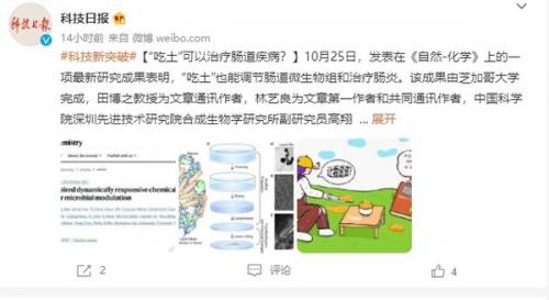 吃土,原指穷到没钱吃饭只能吃土,后来引申到网络购物,强调购物的疯狂程度。网友们常在过度购物后自嘲花销太大下个月准备吃土。不过,你能想到网友用来自嘲的话居然是真的,而且还有意想不到的好处。不过,也不是什么土都能吃。近日,CNMO了解到,发表在《自然-化学》上的一项最新研究成果表明,吃土能够调节肠道微生物组和治疗肠炎。